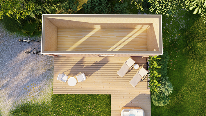 Pour cet investissement immobilier, nous avons réalisé un studio de jardin de plus de 27m² aux dimensions spécifiques adaptées à leur terrain.